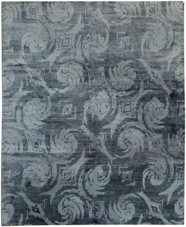 Hand Knotted Bamboo Silk and Wool Gray Transitional All Over Modern Indo Nepal Rug. Hand-knotted in Indio Nepal with bamboo silk and fine wool on a cotton foundation. . Fine quality area rug woven with a contemporary design. The patterns are contemporary and beautiful modern designs. Elegant eye-catching designs crafted by expert weavers so cheery and welcoming. . Combination of modern styling rich colors and plush yarn make this high quality hand knotted rug a perfect fit for today's active home..