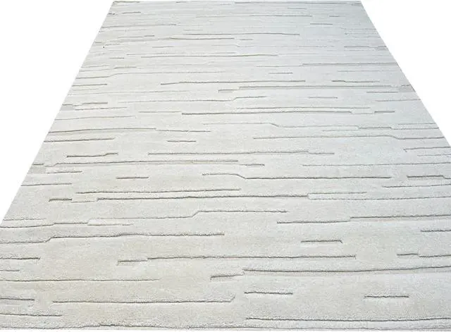 Hand-Knotted Wool White Modern Contemporary HANDKNOTTED Rug. Introducing our exquisite White Hand-Knotted Wool Area Rug a perfect combination of style durability and craftsmanship. Meticulously handcrafted with attention to detail this rug adds elegance and sophistication to any space.. The versatile White color of this rug effortlessly complements various interior styles from contemporary to traditional. Its neutral tone creates a serene and balanced ambiance enhancing the overall aesthetic of your room.. Crafted with meticulous care our White Hand-Knotted Wool Area Rug showcases intricate patterns and designs that reflect the expertise of skilled artisans. Each knot is carefully tied ensuring a rug of exceptional quality and long-lasting beauty.. Made from high-quality wool this rug offers durability natural stain resistance and a soft texture underfoot. The plushness of wool adds warmth and comfort making it perfect for creating a cozy and inviting atmosphere in your living room bedroom or any other space.. Enhance your decor with the timeless elegance of our White Hand-Knotted Wool Area Rug. Its fine craftsmanship and versatile White hue make it a versatile centerpiece that effortlessly elevates your space. Invest in the enduring beauty of our White Hand-Knotted Wool Area Rug. Its superior quality versatile color and luxurious wool texture make it a timeless addition to your home. Elevate your interior with this exceptional rug and experience the perfect blend of style and durability..