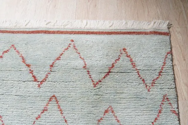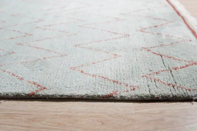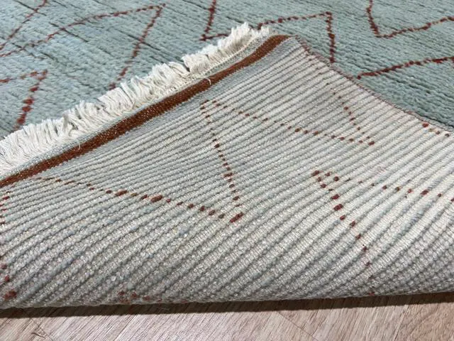 Hand-Knotted Wool Light Blue Modern Contemporary Moroccan Rug. Introducing our exquisite Hand-Knotted Wool Light Blue Modern Contemporary Moroccan Rug a fusion of impeccable craftsmanship and contemporary allure. Meticulously hand-knotted using premium wool this rug guarantees both durability and luxurious comfort for your everyday enjoyment.. Embrace the calming charm of its light blue hue evoking a sense of serenity and sophistication in any room. With a modern contemporary design adorned with captivating patterns and geometric motifs this rug adds a touch of refined elegance to your living spaces.. Inspired by the rich cultural heritage of Morocco this rug effortlessly blends exotic allure with contemporary flair. Each hand-knotted detail weaves a story of tradition making this rug an extraordinary addition that exudes both authenticity and luxury.. Upgrade your interiors with the Hand-Knotted Wool Light Blue Modern Contemporary Moroccan Rug a perfect harmony of tradition and modern aesthetics. Redefine your decor with this exquisite centerpiece that enhances the ambiance of your home with grace and style.. Experience the epitome of opulence and artistry - Shop now and embrace the allure of this Hand-Knotted Wool Light Blue Modern Contemporary Moroccan Rug. Redefine your living spaces with elegance tranquility and the timeless essence of Moroccan craftsmanship..
