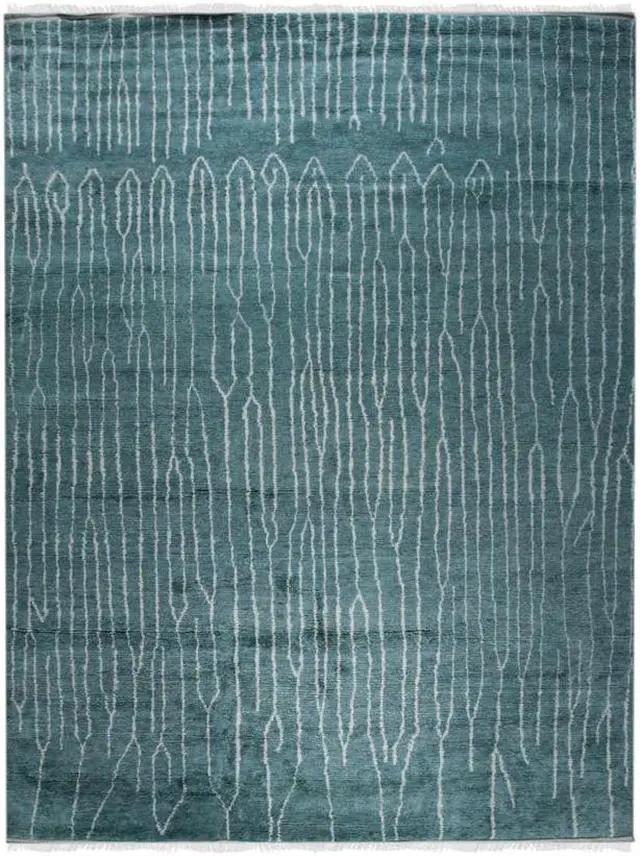 Green Transitional Contemporary Moroccan Area Rug. The rug features a color palette that predominantly includes shades of green creating a fresh and vibrant atmosphere. Green is often associated with nature growth and harmony making it an excellent choice for creating a peaceful and inviting environment. This rug embodies a transitional design style meaning it harmoniously combines traditional and contemporary design elements. It may feature a fusion of classic motifs and modern patterns offering a balanced and timeless aesthetic.. The Moroccan influence is evident in the rug's design characterized by intricate geometric patterns arabesque motifs and the use of rich and diverse colors. Moroccan design is known for its exotic and ornate look and this rug captures that essence. The rug is typically crafted from high-quality materials that balance softness with durability. This may include natural fibers like wool synthetic materials or a combination of both ensuring comfort and longevity.. The Moroccan-inspired design on the rug is characterized by intricate and detailed patterns often featuring a mix of geometric shapes curves and various motifs. The design is presented in a rich and diverse color palette creating a visually appealing and exotic look. A well-crafted rug of this type will exhibit precision in its design an even pile height and strong stitching. Quality craftsmanship ensures that the rug maintains its beauty and durability over time.. This rug serves as a versatile decorative element in your room. The Moroccan design and the green color make it a focal point that can blend seamlessly with various interior decor styles adding a touch of exotic and harmonious ambiance to your space.. To keep the rug looking its best it's important to follow care instructions. Regular vacuuming and occasional professional cleaning as recommended for the material used will help maintain its appearance. In summary a Green Transitional Contemporary Moroccan Area Rug is a visually dynamic and versatile piece that marries the refreshing appeal of green with the exotic allure of Moroccan design. It's not just a functional floor covering but also a captivating work of art that can elevate the aesthetic of your living space creating a sense of harmony and cultural richness in your decor..