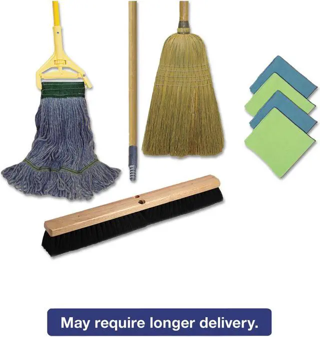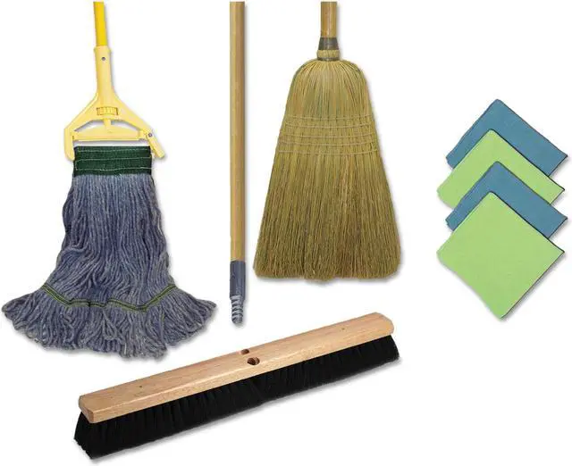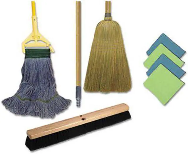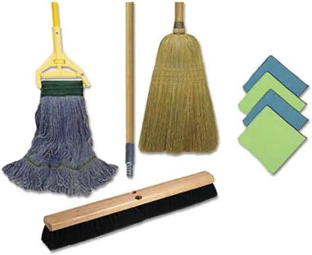 Boardwalk® Cleaning Kit, 1 Mop, 2 Handles, 1 Push Broom, 1 Maids Broom, 4 Microfiber Wipes