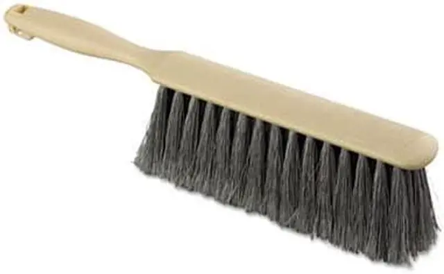Handy, cleaning brush thats attached to an ergonomic molded handle. The curved plastic handle is easy to grip and comfortable for extended use. Constructed with thick, full, resilient bristles that are stiff, yet flexible enough to navigate through cracks. Counter brushes are ideal for pushing sawdust, glass, and debris on various hard surfaces. The built-in lanyard hole enables hang-hook storage. Flagged Polypropylene Bristles. Bristle Material: Polypropylene; Bristle Length: 2.5 "; Brush Length: 4.5"; Handle Length: 3.5".