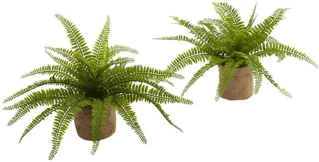 Subtle and attractive - those are the best words to describe this beauty. Whether used as the perfect accessory to brighten a room in the house, or used as a little splash of color to the office, the Boston Fern is a sure crowd pleaser. This classic artificial plant remains a favorite for room decor. The fern is also housed in a lovely burlap planter that only enhances its natural good looks.