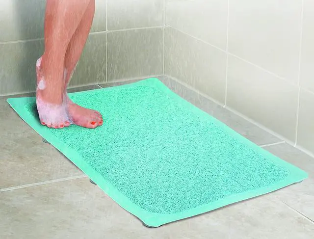 Hydro Rug Shower Stall adds comfort to your feet and prevents slipping in the shower. Eliminating soggy mats this quick drying rug has eight suction cups to ensure stability and soothing sponge like material to provide comfort. Ideal for children and seniors the Hydro Rug is perfect for any size shower stall with its textured surface for slip resistant bath and shower safety. Size 19.75 in by 19.25 in