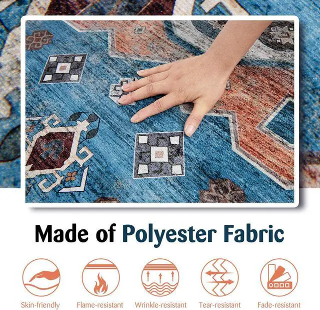 Durable and Waterproof Back: The back of this area rug specially adopts premium non-woven fabric and polyester-cotton material, which is waterproof and wear-resistant. Apart from that, the backing is also smooth, which won't scratch the floor when you need to drag it. Tips: The back of this area rug is not anti-slip, so please use it with a non-slip mat.