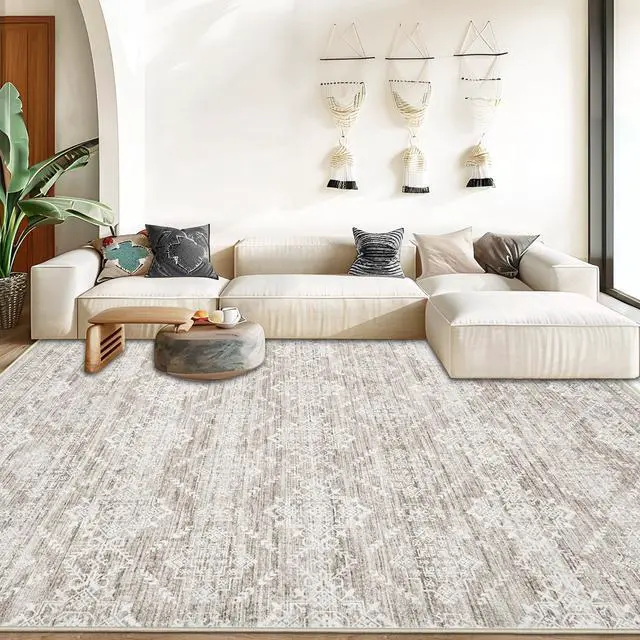 Area Rug Living Room Rugs 8x10 - Large Soft Boho Geometric Rugs, Non-Slip Foldable Washable Rugs Non Shedding Morden Indoor Floor Carpet for Living Bedroom Office Dining Room(Ivory Mocha,8'x10')