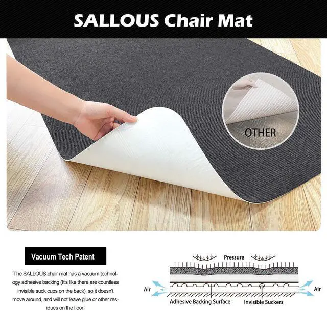 - This chair mat has a non-slip adhesive backing with vacuum tech.