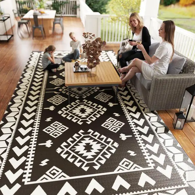 Easy to Maintain: Crafted from 100% polypropylene with a protective coating, this waterproof rug resists fading and sun damage. For easy cleaning, rinse with water, sweep, wipe with a damp cloth, and air dry.
