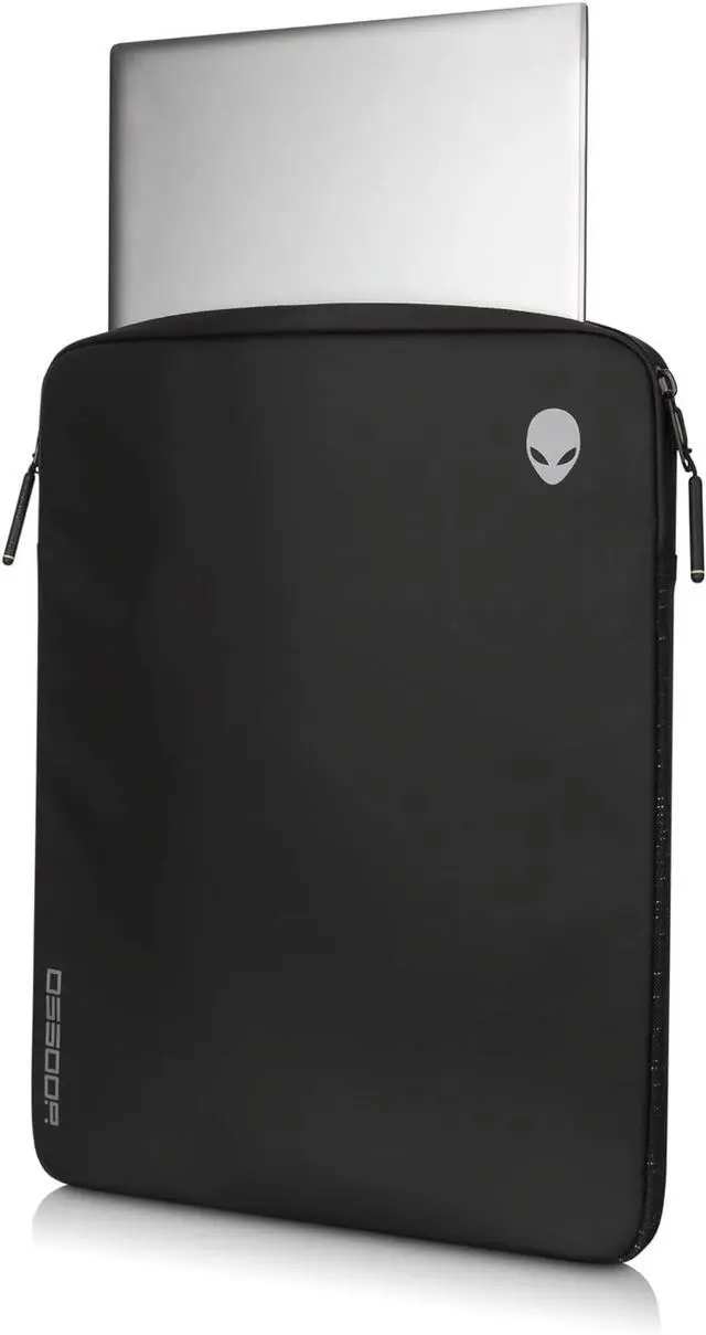 Our design is built with Alienwares sustainable, robust and weather-resistant GalaxyWeave fabric, and enhanced with 360 degree EVA foam cushioning to keep your devices protected against any bumps or shocks. With anti-scratch Nylex lining on the internal pockets you can say goodbye to scrapes. We designed these laptop sleeves with our iconic Legend ID, featuring prominently placed Alienware refractive logos. It also features custom Alienware tube zipper pullers and an easy grab handle that lets you pull your laptop out of backpacks with ultimate ease.