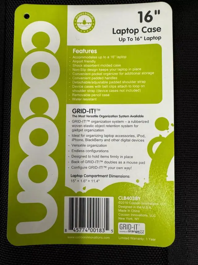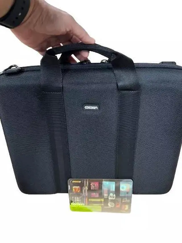The Cocoon Laptop Case for up to 16" laptops is a sleek and functional carrying solution designed for professionals and travelers. It features padded compartments to protect both laptops and tablets, along with Cocoons signature GRID-IT! ® organizer, which keeps accessories like chargers, cables, and pens neatly arranged. The ballistic nylon exterior offers durability and water resistance, while the adjustable shoulder strap ensures comfortable carrying. With its compact yet spacious design, this case is ideal for keeping devices and essentials secure on the go.