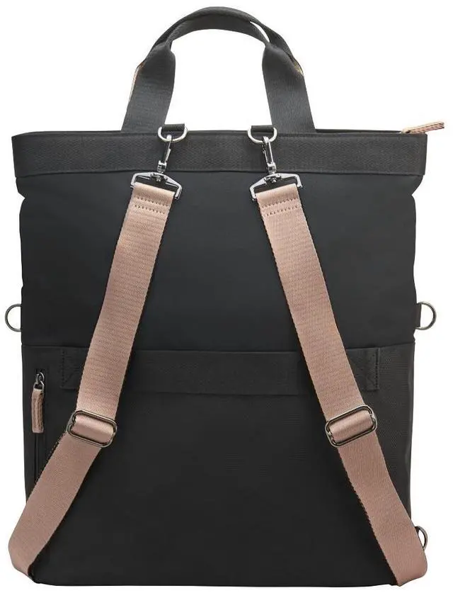 OverviewWhether on-the-go for work or play, keep your technology close with one functional, lightweight bag that adjusts to match your style and mission. Convert it from a 14-inch laptop backpack to a tote, folded bag, or handbag, so you can take it with you no matter what you do or where you go. What's in the box? Backpack; Removable strapsDisclaimers Fits most laptops up to 14 inches. Bottle count calculation is based on 12.7 grams per 16.9 ounce single serve bottle. Recycled plastic content percentage is based on the definition set in the IEEE 1680.1 -2018 EPEAT® standard.
