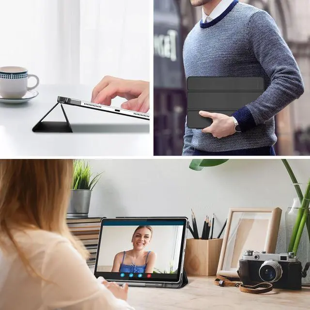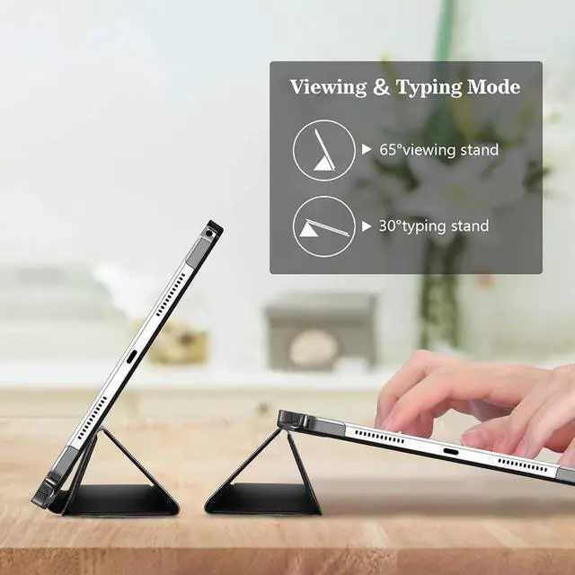 Stand Case: Slim Magnetic Front Cover can be folded into a triangle to prop up the tablet in landscape for viewing or typingSlim