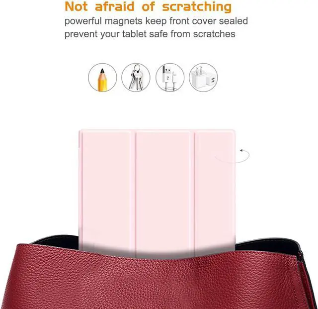 HIGH QUALITY PROTECTION: The case features an easy-to-install TPU frame and a hard clear back to showcase your device's original beauty and the PU front cover highly protects your tablet from drops and scratches.