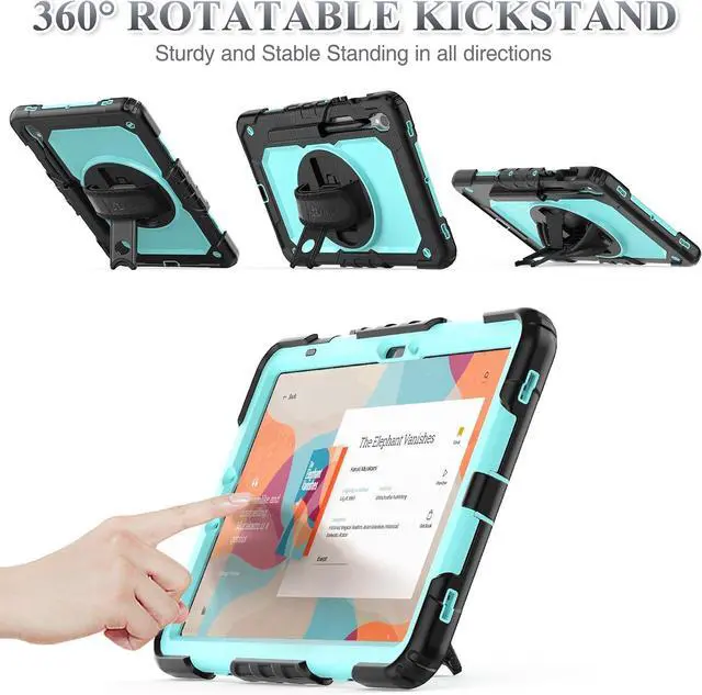 Compatibility: Protective Case for Galaxy Tab S10 FE 10.9 -inch 2024 SM-X520/ X526B/ X528U; for Galaxy Tab S9 FE 10.9 -inch 2023 SM-X510/ X516B/ X518U; for Galaxy Tab S9 11-inch 2023 SM-X710/ X716B/ X718U; Please confirm the model before purchase this case for tabletSoft Hand Strap & Portable Shoulder Strap & Rotating Stand: Provide the protection and convenience when you play or work with Case for Galaxy Tab S10 FE / S9 FE 5G case makes your hands-free; 360 Degrees rotating kickstand provides multi-angle landscape/portrait viewing with soft hand strap & shoulder strap easy to use Case for S10FE/ S9FE Tablet while outdoor travelling working gamingFull-Body