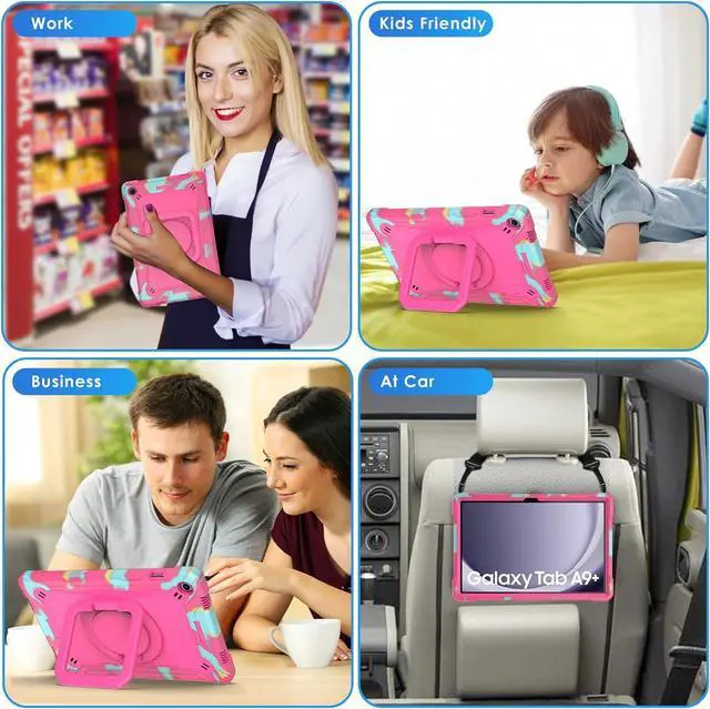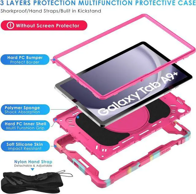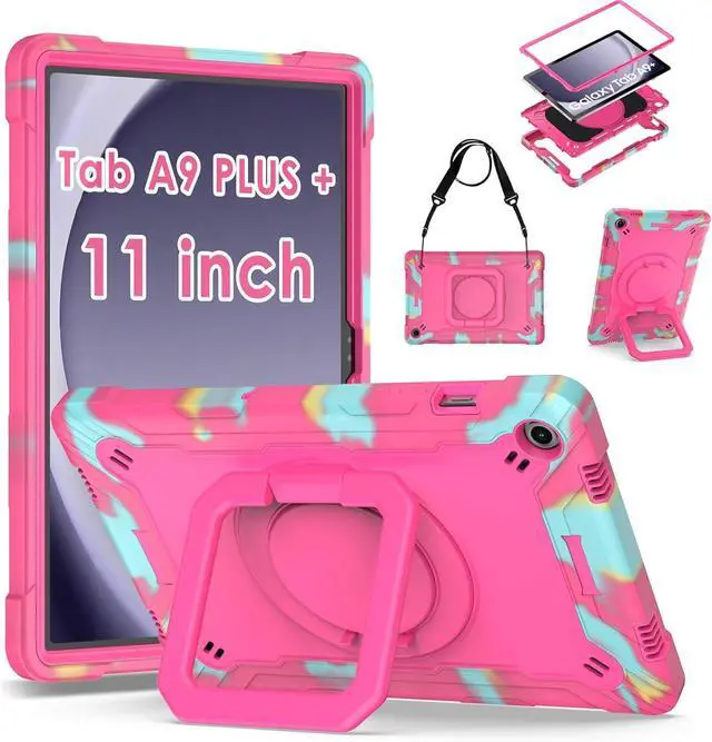 LAYER DURABLE PROTECTION: Case for Samsng Tab A9 Plus 11 inch is consists of a tough PC inner shell and a top PC frame to help protect your tablet. Flexible outer silicone can absorb the impact from accident drop or shock providing in full body protection. NOT included screen protectorGALAXY TAB A9 PLUS CASE WITH SHOULDER STRAP: Tablet cover for Galaxy Tab A9 Plus contains a shoulder strap which can be attached to any of the 2 holes. You can carry your tablet like a messenger bag. You can also hang the tablet on the back seat of the car for entertainment for kidsCOVER FOR TAB A9 PLUS WITH ROTATING STAND: Galaxy Tab A9 Plus shockproof case comes with foldable stand you can adjust angles at will. Adjustable Hand Ring can makes you hold or use your tablet easily in all directions. The rotating bracket can also be used as a handlePRECISE