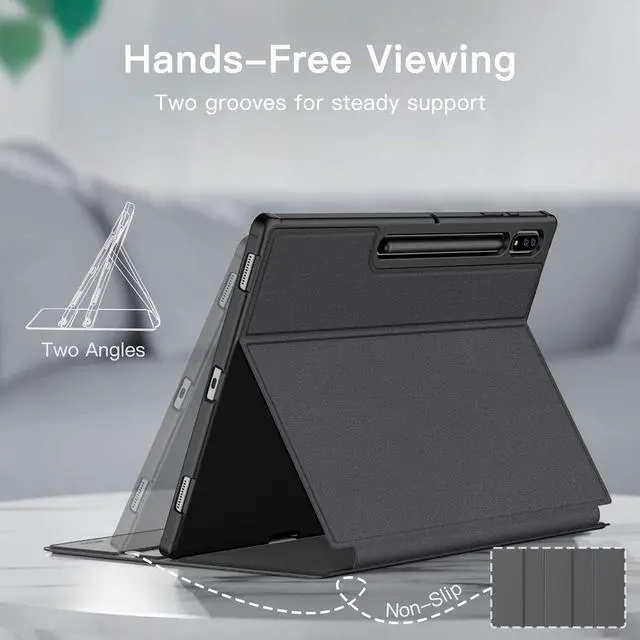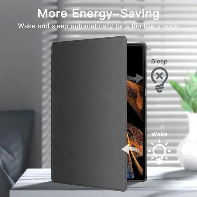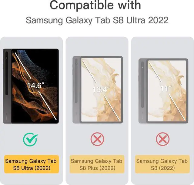 [Wide Compatibility] Designed for 14.6 -inch Galaxy Tab S8 Ultra 2022 released (SM-X900 / X906). Please double check the model number before purchasing[Slim Yet Shockproof] Provide enhanced drop protection with premium PU leather exterior and flexible TPU. Add minimal bulk and make it feel more comfortable in your hand. Slim sleek and ensure a secure grip[S Pen Holder] The inside pen slot for your S Pen to store safely. Easy to carry and use your pen whenever you want. Also support stylus magnetic wireless charging on the back of the case (S Pen Not Included) [Multi Standing Positions] The two anti-slip grooves of the front cover can prop up your device in different viewing angles.