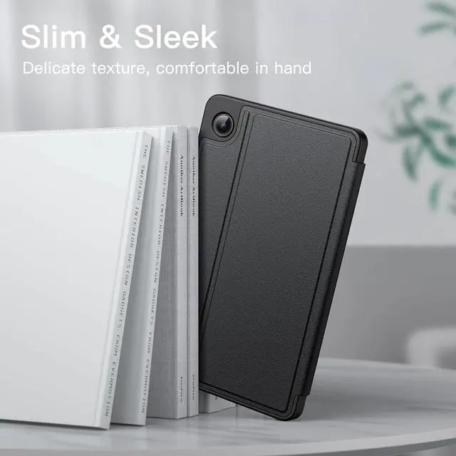 [Compatibility] Designed for Galaxy Tab A9 8.7 -inch 2023. Please double check the model number before purchasing[Slim yet Shockproof] Provide enhanced drop protection with a premium PU leather exterior and a soft TPU inner back. Add minimal bulk and make it feel more comfortable in your hand. Slim sleek and ensure a secure grip[Multi Standing Positions] The two anti-slip grooves of the front cover can prop up your device in different viewing angles[Thoughtful Design] Suitable cutouts for the camera speaker buttons and other ports. Allow easy access to all the features and controls[Secure Closure] Built in magnets make it easier and safer to snap on and off.