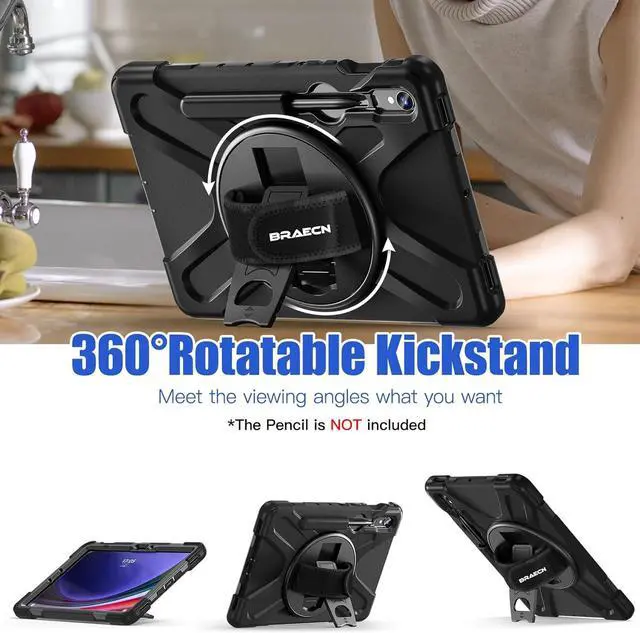 Rotating Hand Strap & Stand: The Protective Galaxy Tab S10 FE/ S9 FE/ S9/ S8/ S7 Case Built-in 360 Rotatable Hand Strap & Kickstand on the back flexible in Vertical & Horizontal any other angles ideal for watching video reading or teaching maximinzely free your hand. Adjustable Hand Strap perfectly suitable uses for all size of hands adults students childAdjustable