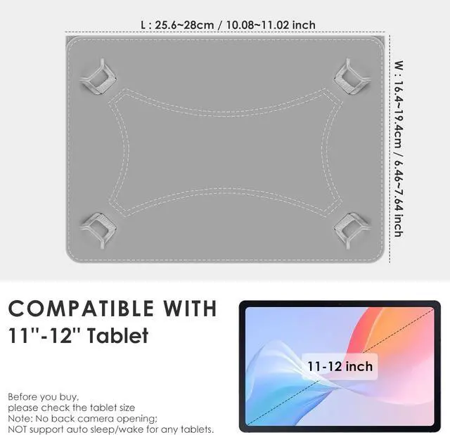 Warm Tips: Not Include The Tablet/ Stylus Pen/ Screen Protector/ Keyboard; Not Support Auto Sleep/Wake For Any Tablets; No Hole For Rear Camera.