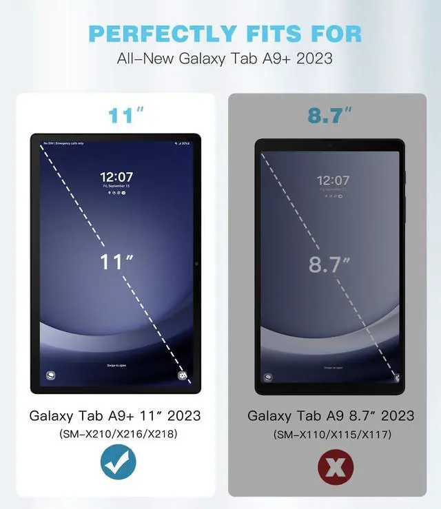 Wake/Sleep: Magnetic cover provides auto sleep/wake feature. Save much power for your tablet so that reduce charging frequency. The external elastic band keeps the Galaxy Tab A9+ Case closed and provides better protection for the tabletPrecise
