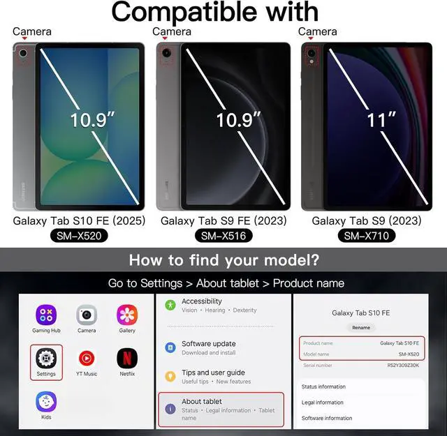 [Perfect Compatibility] Only fit for Galaxy Tab S10 FE / S9 FE 10.9 inch / S9 11 inch release tablet. Please make sure your tablet model is the right one before purchase[360 Degree Rotating] This case supports 360 degree rotation for flexible landscape and portrait viewing. And it supports multiple standing positions. Not only is it functional and convenient but it also helps you find the most comfortable reading or viewing angle[Sturdy Protection] Built with clear PC back shockproof TPU frame and PU leather front cover this case protects your tablet well against drops and bumps.