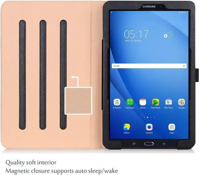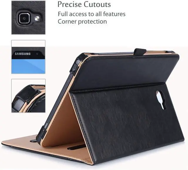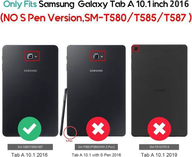 This case is ONLY compatiblet with Galaxy Tab A 10.1 Inch No S Pen Version SM-T580/T585/T587 Tablet 2016 Release Old Model. It will NOT work for any other model devices. Please check the model number SM-T*** at the Setting of the tablet before purchaseClassic and professional design solid construction; Full access to all features (Cameras Speaker Ports and Buttons) Premium composition leather exterior and soft interior offer great protection against daily useSupports auto Sleep/Wake feature; Multiple viewing and typing angles; magnetic closure secure the caseBuilt-in elastic stylus pen holder for storing the S pen