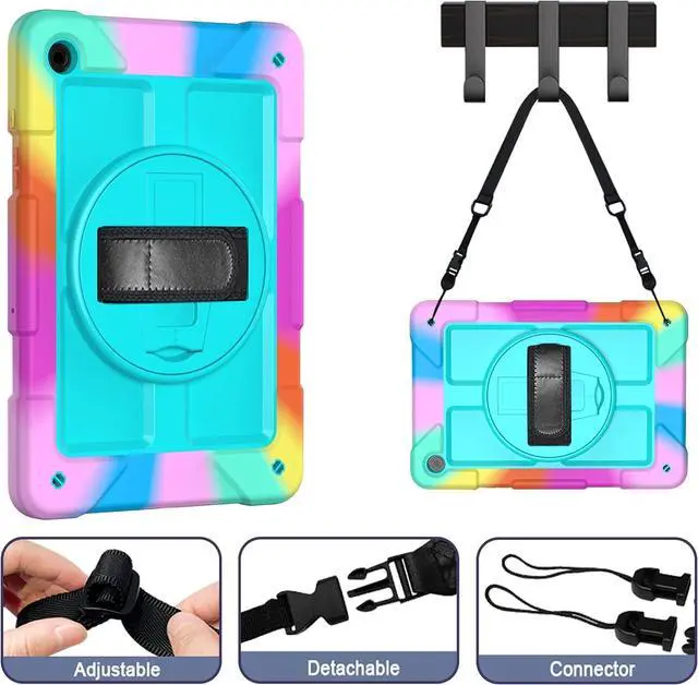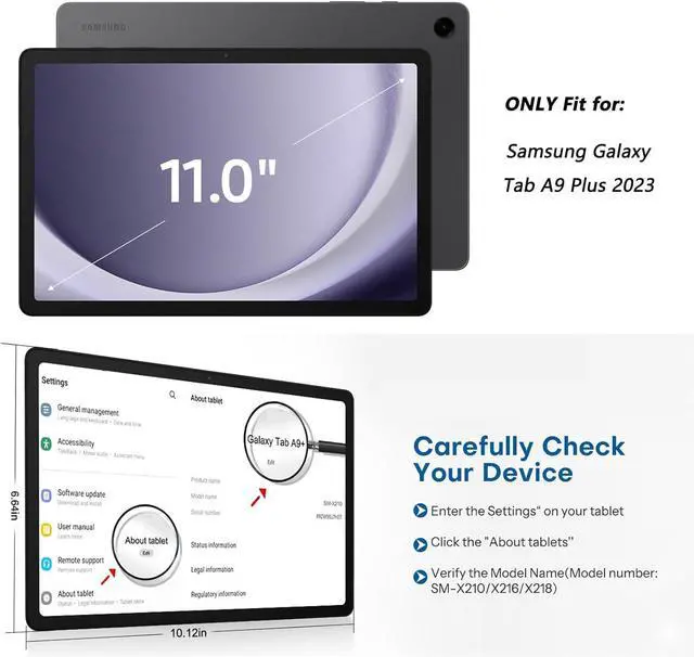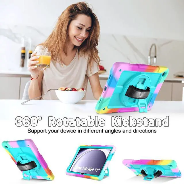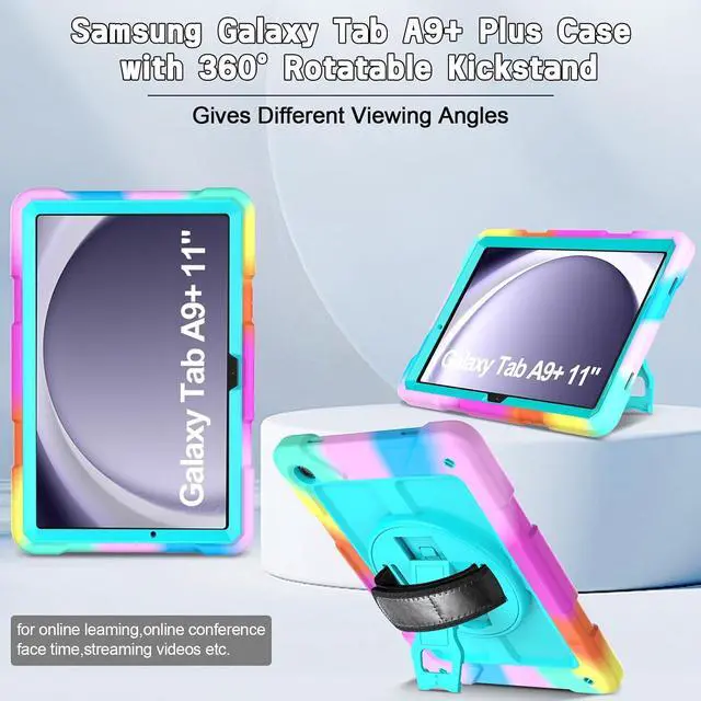 ? CompatibilityExclusively designed for Galaxy Tab A9 Plus 2023 tablet (SM-X210/X216/X218). NOT fit for other tablet model.? Rotatable Stand + Hand Strap360 Rotating Kickstand provides multi-angle viewing with soft handle strap easier to hold and use your tablet in your outdoor traveling working gaming with kids.? Portable Shoulder StrapThe adjustable shoulder strap provides the secureest protection and more convenience when you play or work with Tab A9+. Hang it anywhere for better entertainment experience free your hands.? Reliable ProtectionHard PC front cover PC back cover plus silicone shell tri-layer altogether provide max protection for your Galaxy Tab A9+ Plus 11-Inch.