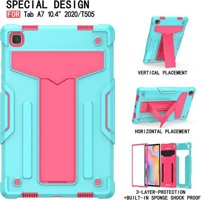 Epicgadget Case for Samsung Galaxy Tab A7 10.4" SM-T500/T505/T507 (2020) - Dual Layer Protective Hybrid Cover Case With Kickstand For Galaxy Tab A7 10.4 Inch Released in 2020 (Teal/Pink)