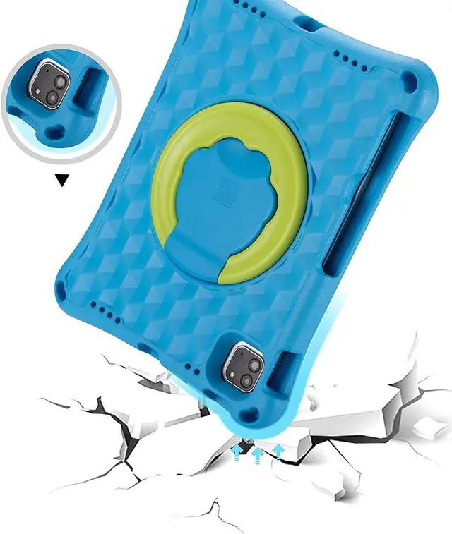 iPad Air 5th/4th Gen 2022/2020, Epicgadget EVA Foam / Dual Layer Hybrid Kids Friendly Cover Stand Case with Rotating Grip Handle for Apple iPad Air 5th/4th Gen 10.9" (2022/2020) - Blue