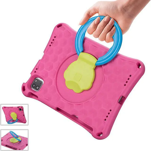 iPad Air 5th/4th Gen 2022/2020, Epicgadget EVA Foam / Dual Layer Hybrid Kids Friendly Cover Stand Case with Rotating Grip Handle for Apple iPad Air 5th/4th Gen 10.9" (2022/2020) - Pink