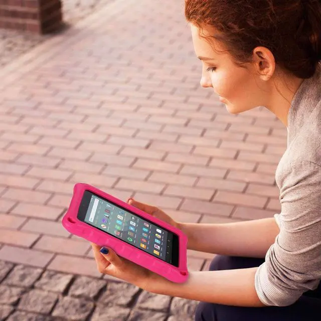 Amazon Fire 7 12th Gen, Epicgadget EVA Foam / Dual Layer Hybrid Kids Friendly Cover Stand Case for Amazon Fire 7 12th Generation / Fire 7 Kids 7" (2022) - Pink