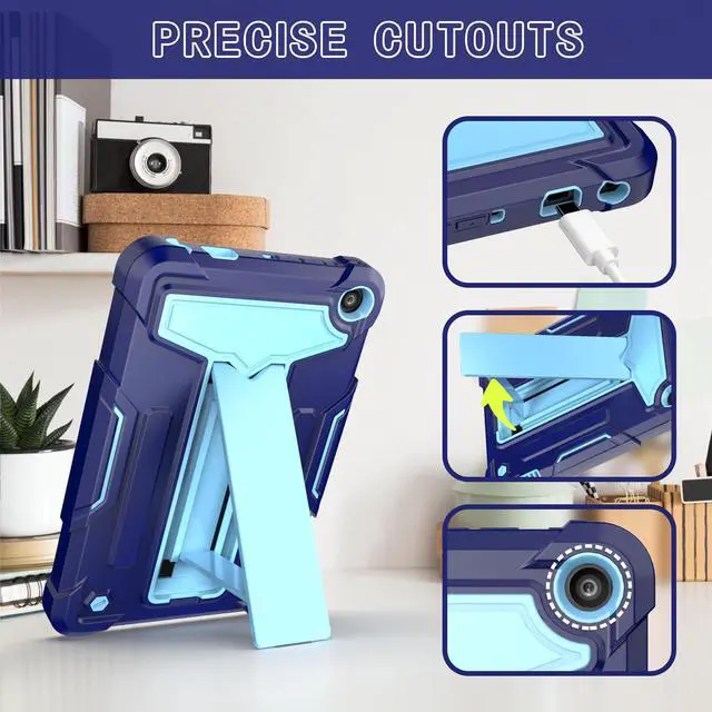 Epicgadget Case for Amazon Fire 7 / 7 Kids - Dual Layer Protective Hybrid Cover Case With T-stand For Amazon Fire 7 12th Gen / 7 Kids 7" 2022 Tablet - Navy blue/ Light blue