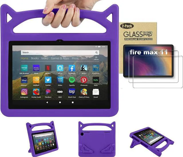 Amazon Fire Max 11 Tablet Case for Kids (13th Generation, 2023 Release) - Lightweight Shockproof Kids Case with Handle Stand + 2 Tempered Glass Screen Protector for Amazon Fire Max 11" Tablet (Purple)
