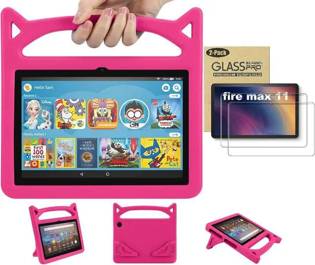 Amazon Fire Max 11 Tablet Case for Kids (13th Generation, 2023 Release) - Lightweight Shockproof Kids Case with Handle Stand + 2 Tempered Glass Screen Protector for Amazon Fire Max 11" Tablet (Pink)