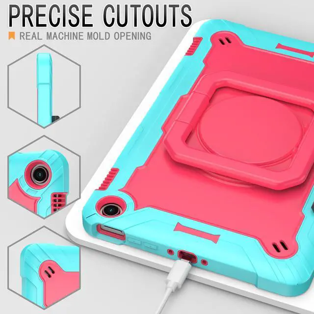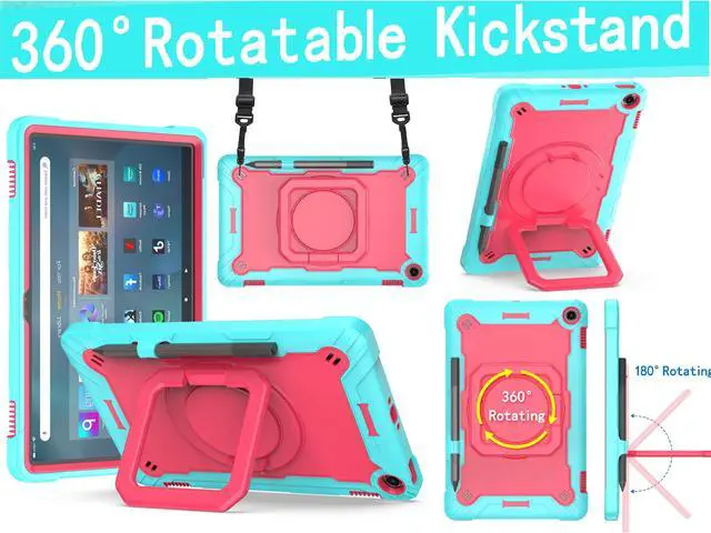 Amazon Fire Max 11 Case with 360 Rotating Swivel Ring Stand, Shoulder Strap, Pencil Holder - Shockproof Protective Cover for Amazon Fire Max 11 inch Tablet (2023 Release, 13th Generation) Teal/Pink