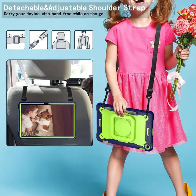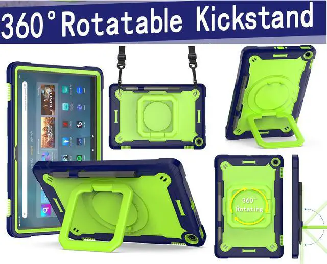 Amazon Fire Max 11 Case with 360 Rotating Swivel Ring Stand, Shoulder Strap, Pencil Holder - Shockproof Protective Cover for Amazon Fire Max 11 inch Tablet (2023 Release, 13th Generation) Blue/Green