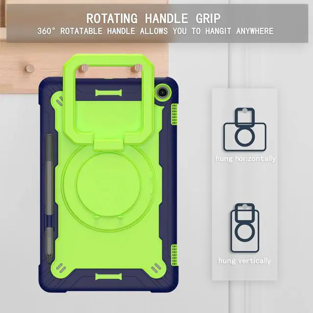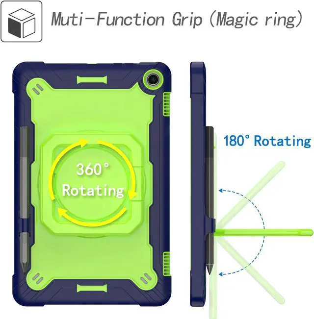 Amazon Fire Max 11 (2023 Release) Tablet Case with Tempered Glass Screen Protector - Military Grade Heavy Duty Rugged Shockproof Protective Cover with 360° Rotatable Stand, Pencil Holder - Blue/Green