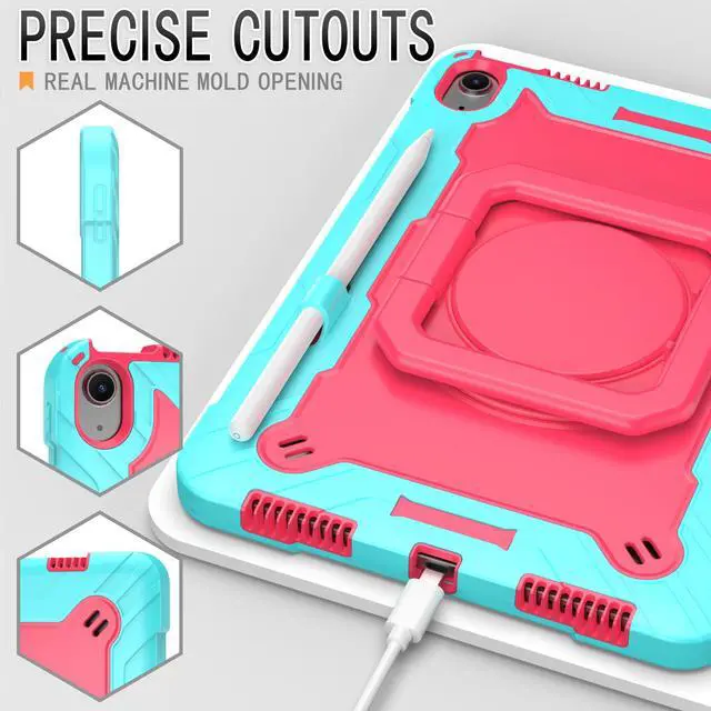 Rugged Shockproof Design: Keep your iPad safe from accidental drops, bumps, and shocks with this advanced three-layer case made of premium hard plastic and soft silicone cover. The built-in PET screen film protects your tablet from fingerprints and scratches
