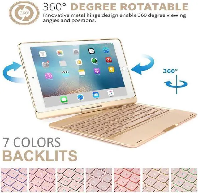 Pro 10.5 ”(iPad model: A1701/A1709). Werleo iPad Keyboard Case is especially for iPad Pro 10.5 A1701 A1709, It combines the protection of a tablet case and a laptop-style keyboard. When closed this tech bad boy is ultra compact and easy to carry around and use on-the-go. Whether you’re trying to squeeze in a few extra to do’s while controlling the world from the back seat of a cab, or killing time in a café, Werleo is a great no-fuss way to get things done remotely. FEATURES 7 color backlit keyboard, 3 levels of brightness ABS ABS keys with silent, responsive X-type design Auto sleep/wake to maximize battery life 90 days continuous use, 10 hours using backlight on single charge - Transform Your iPad into a Laptop in Seconds Build-in battery will allow you to continuously use this keyboard case at any where you want for up to 5 hours (With backlits) or 181 hours. Ultra Slim and premium looking, makes your iPad into a laptop in seconds. - TWIST. SWIVEL. FOLD. THE CASE THAT WORKS FOR YOU There’s a right angle for every situation – and it’s not always 90 degrees.
