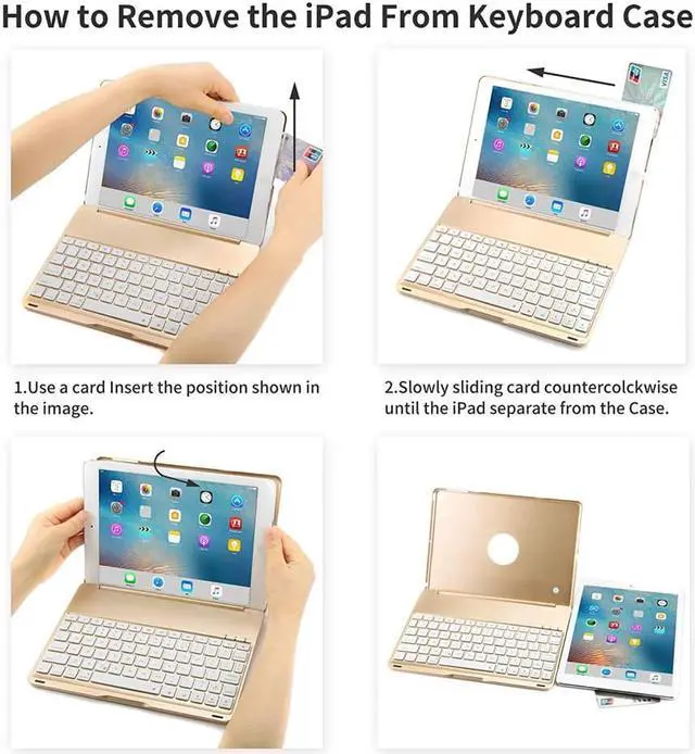 Wake Function: Opening or closing the ipad 9.7 keyboard case triggers iPad's sleep or wake modes. The ipad battery keyboard case’s working time: about 30 days (without backlight) / 5 -10 hours (with backlight).