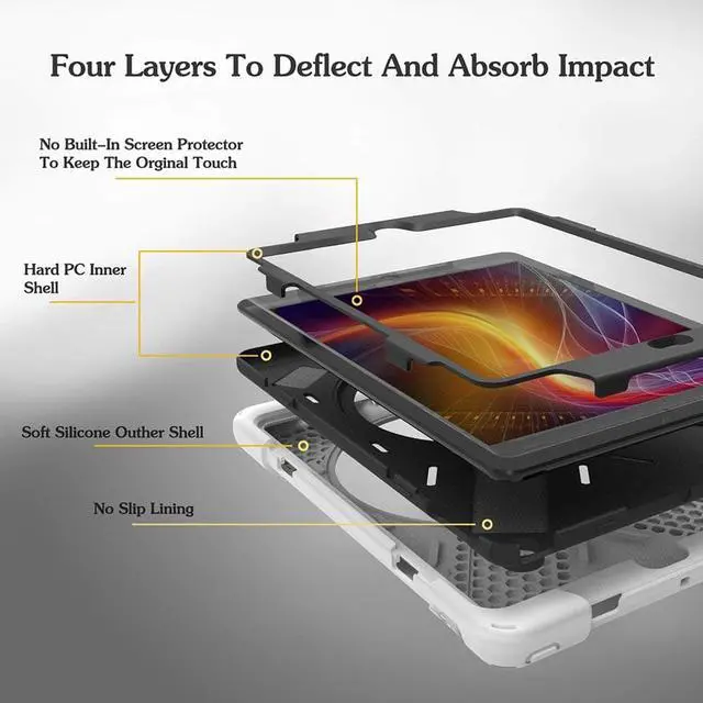 Equipped with flexible rubber-like silicone outer frame and four thicker round corners. It keeps your iPad secure and protect it from bumps, drops, and spills. Shatter- resistance and shock-proof design will greatly enhance your sense of safety.
