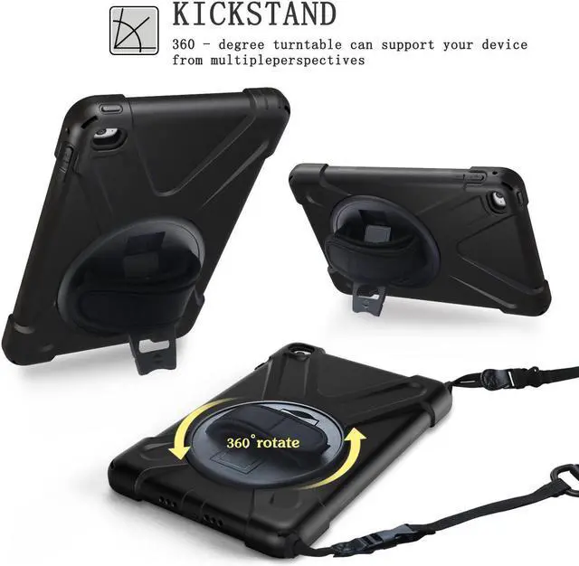 360 degrees rotatable kickstand & The adjustable hand strap mechanism for better experience with your iPad.Ideal for kids, students, teachers or anyone else who needs it for presentations, conferences and travelling.