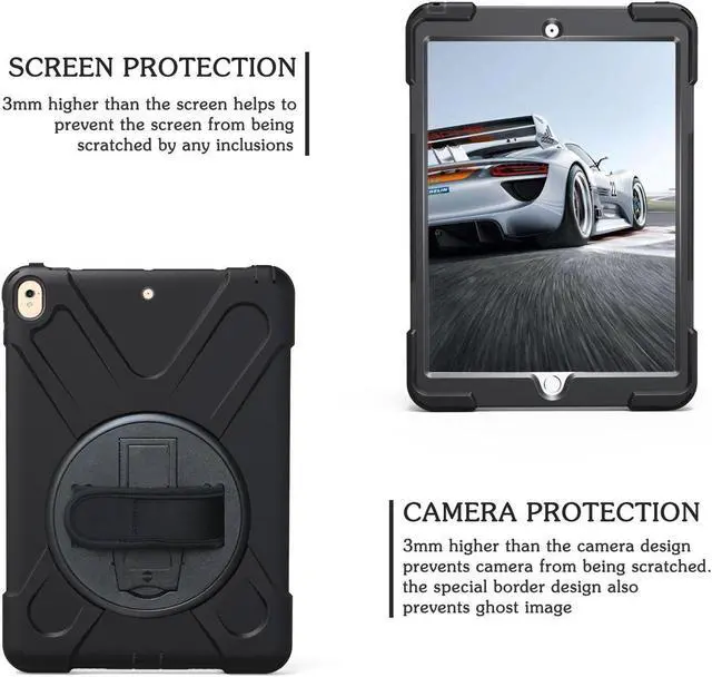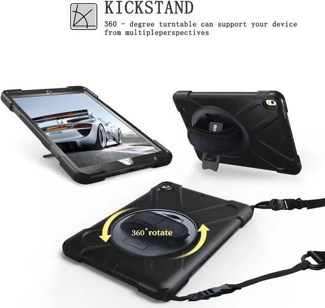 360 degrees rotatable kickstand & The adjustable hand strap mechanism for better experience with your iPad.Ideal for kids, students, teachers or anyone else who needs it for presentations, conferences and travelling.