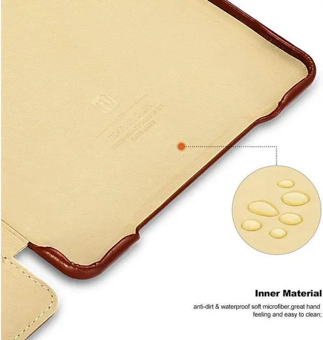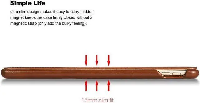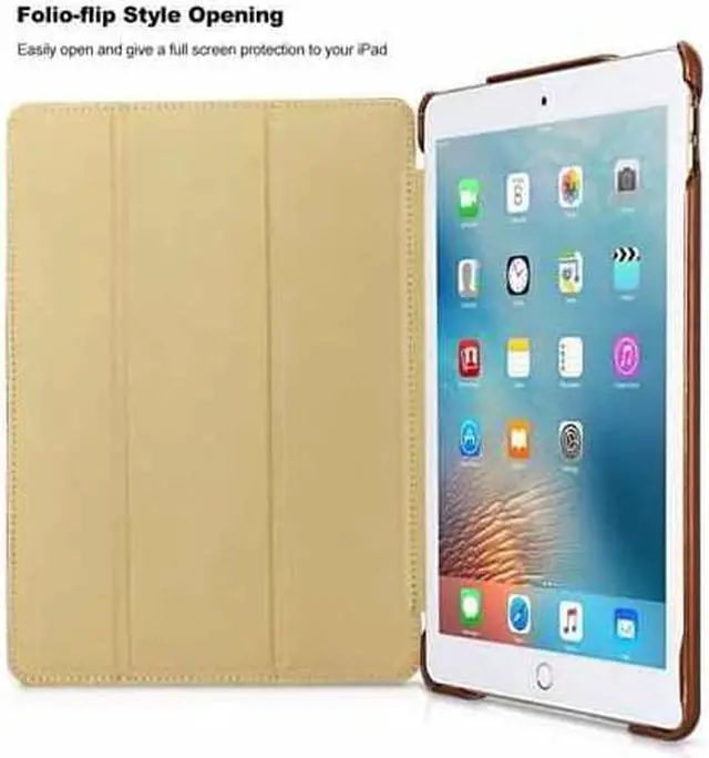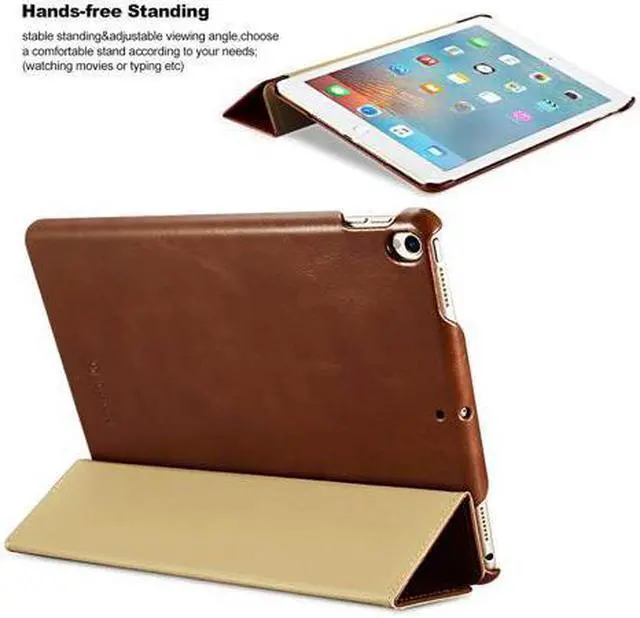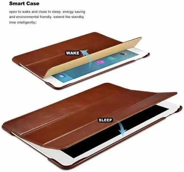 Features: Made of real cowhide leather which hand feeling is comfortable; Built-in magnet to control the auto sleep / wake function; Hidden magnet closure without strap make it slim and easy to carry; Hands-free standing function help you reading or typing with iPad easier; Exquisite cutout make it not effect the usage of iPad;