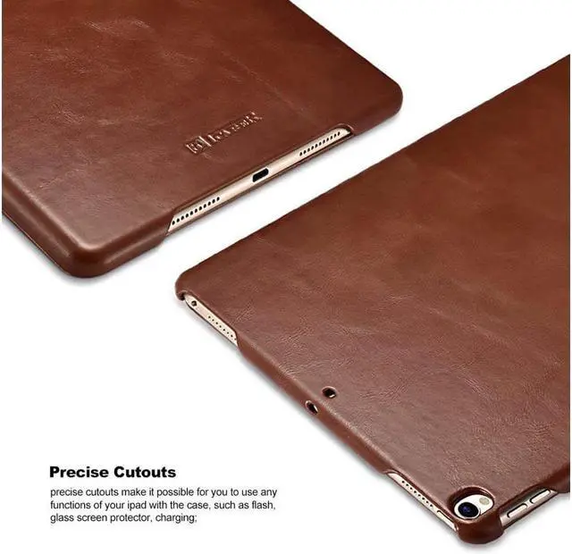Highlights: iPad Pro 10.5 (2017) leather case made of premium cowhide leather which hand feeling is comfortable; Inner anti-dirt & waterproof soft microfiber protect iPad from scratch and fits very snug; Folio style full cover design provides a good protection for your iPad, hidden magnetic closure without bulky strap make it slim and easy to carry; Promote the usage experience of iPad by choosing the best standing way when you are reading/watching or typing; Auto sleep / wake function are also support in this case; Exquisite cutouts offer an easier access to all ports, all buttons, sensors, speakers & camera on your iPad; Compatible with iPad Pro 10.5 2017 ONLY. The same case for iPad Pro 9.7 / iPad Pro 12.9 could be found in our store. iPad Pro 10.5 2017 Real Leather Case [Comfortable Hand Feeling & Slim Design] with Auto Sleep / Wake Function [Hands-free Standing];