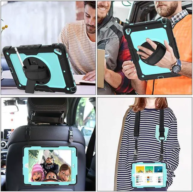 Soft Hand Strap & Portable Shoulder Strap & Rotating Stand: Provide the securest protection and more convenience when you play or work with iPad. Hang it anywhere for your better entertainment, make your hands free. 360 Degree rotating Kickstand provides multi-angle viewing, with soft handle strap, easier to use your iPad in your outdoor travelling, working, gaming with kids.