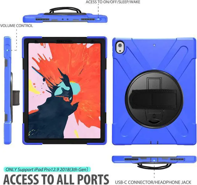 iPad Pro 12.9 Case 3rd Gen 2018 Heavy Duty Shockproof Protective Case Cover with 360 Degree Rotating Kickstand / Adjustable Hand Strap and Carrying Shoulder Strap for iPad Pro 12.9 3rd Generation