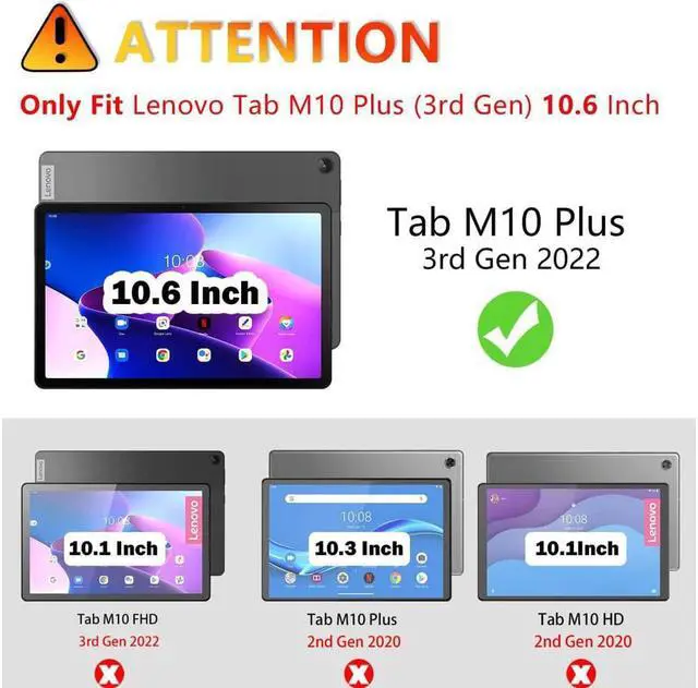 This case is only compatible with Lenovo Tab M10 Plus 10.6 inch 3rd Generation 2022 (Model: TB-125FU/TB-128FU/TB-128XU). It will NOT work for any other model device, High quality PU leather cover and soft, microfiber-lined interior provide full protection for your tablet.