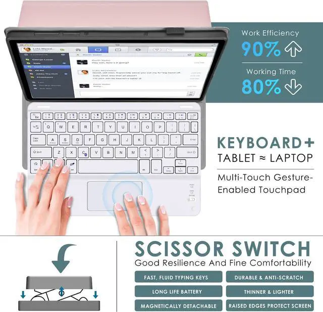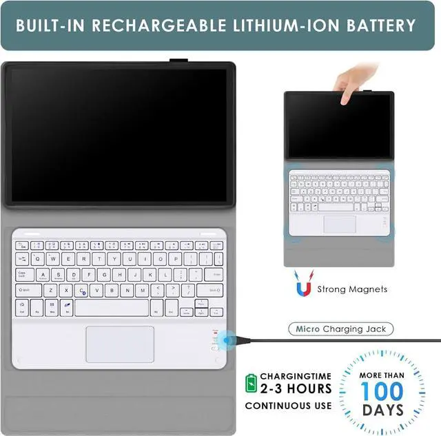 Detachable Keyboard with Touchpad Function --- The keyboard design with Touchpad.The built-in touchpad can allow you to control the cursor like a laptop, which is convenient for studying and working.The magnetic keyboard is removable and can make it easy to put the Tablet and keyboard in a comfortable position.