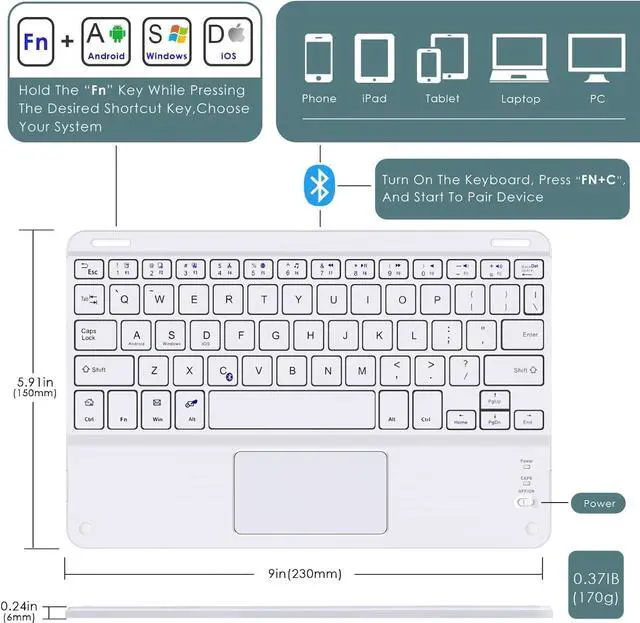 Note: This bluetooth keyboard is compatible with Android / IOS / Windows: Systerm: (Default mode: IOS Systerm)